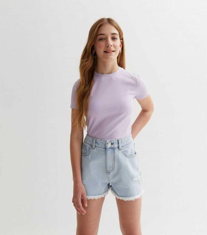 Denim | New Look Girls Pale Blue Cotton Denim High Waist Frayed Hem Shorts