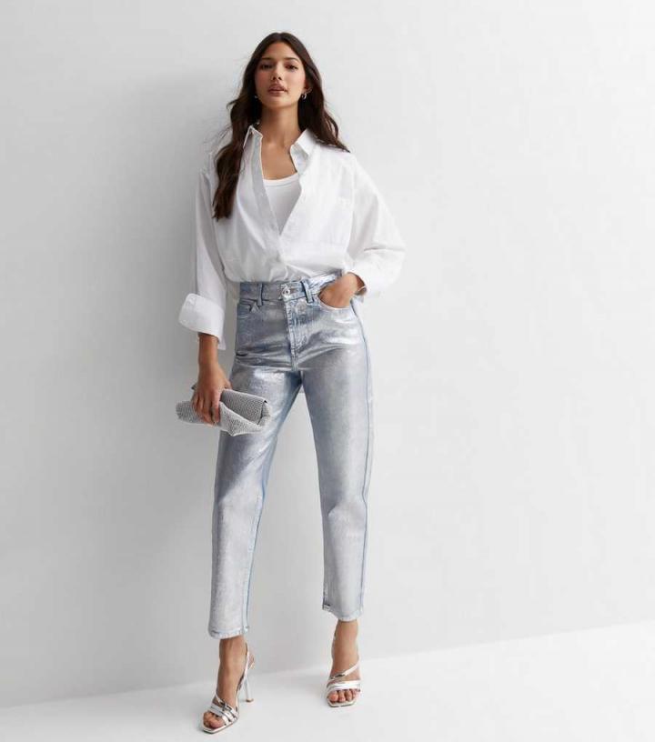 Denim | New Look Womens Blue Metallic Tori Mom Jeans