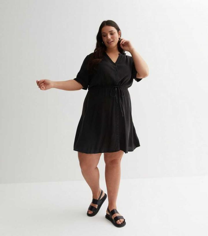 Denim | New Look Womens Curves Black Denim V Neck Short Sleeve Front Tie Mini Dress