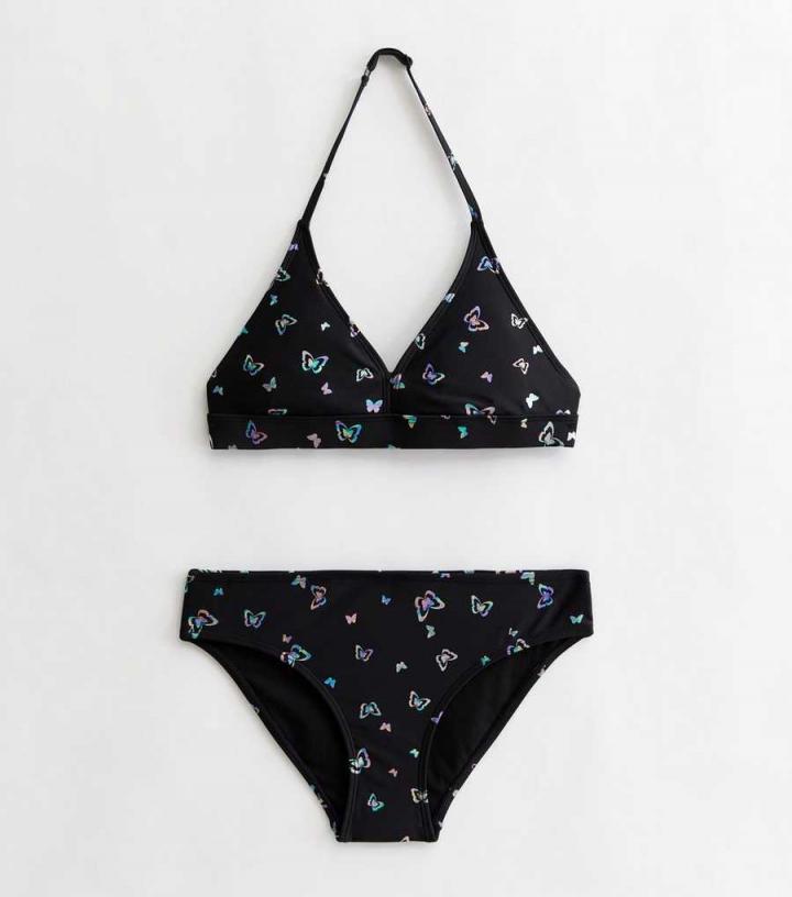Swimwear | New Look Girls Black Iridescent Butterfly Triangle Bikini Set