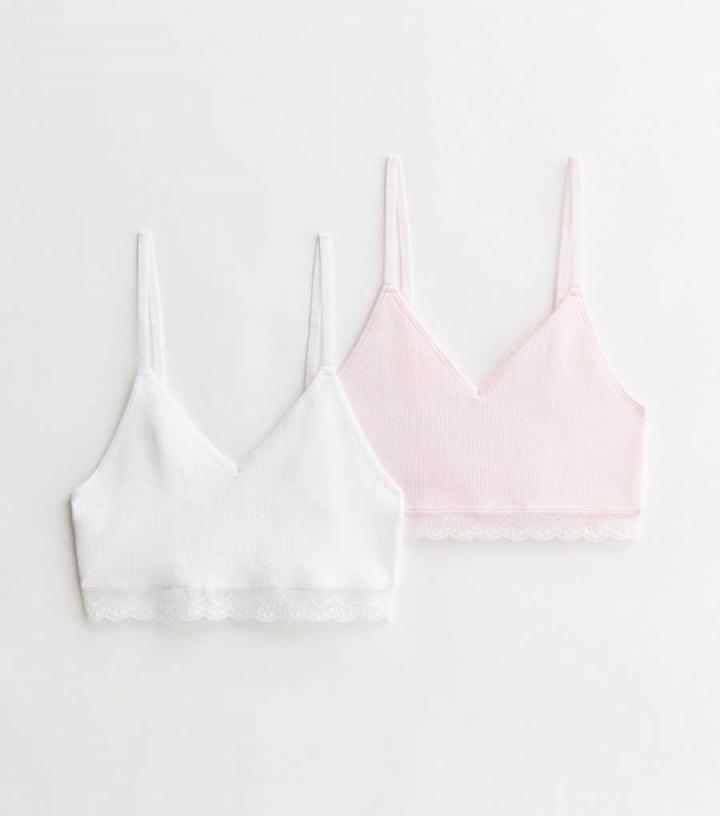 Underwear | New Look Girls 2 Pack Pink and White Lace Trim Crop Tops