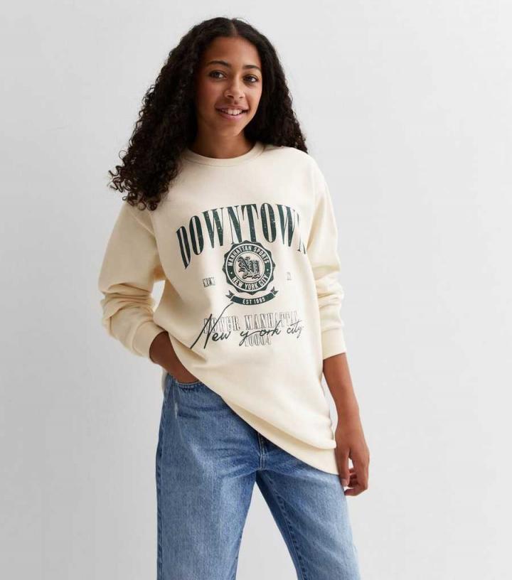 Hoodies & Sweats | New Look Girls Cream Downtown Logo Longline Sweatshirt