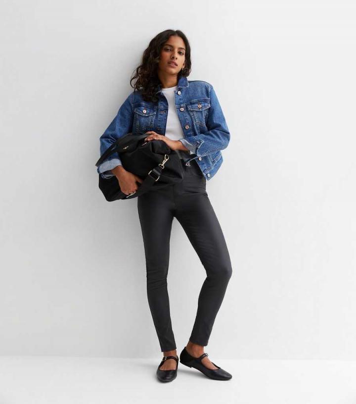 Jeans | New Look Womens Petite Black Coated Leather-Look High Waist Emilee Jeggings