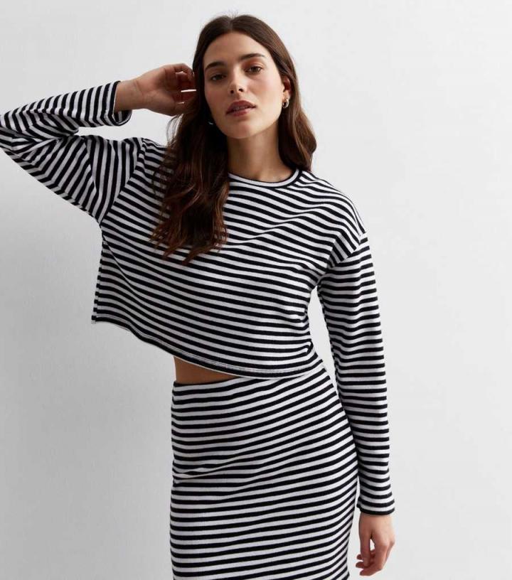 Co-ords | New Look Womens White Stripe Brushed Knit Long Sleeve Crop Top