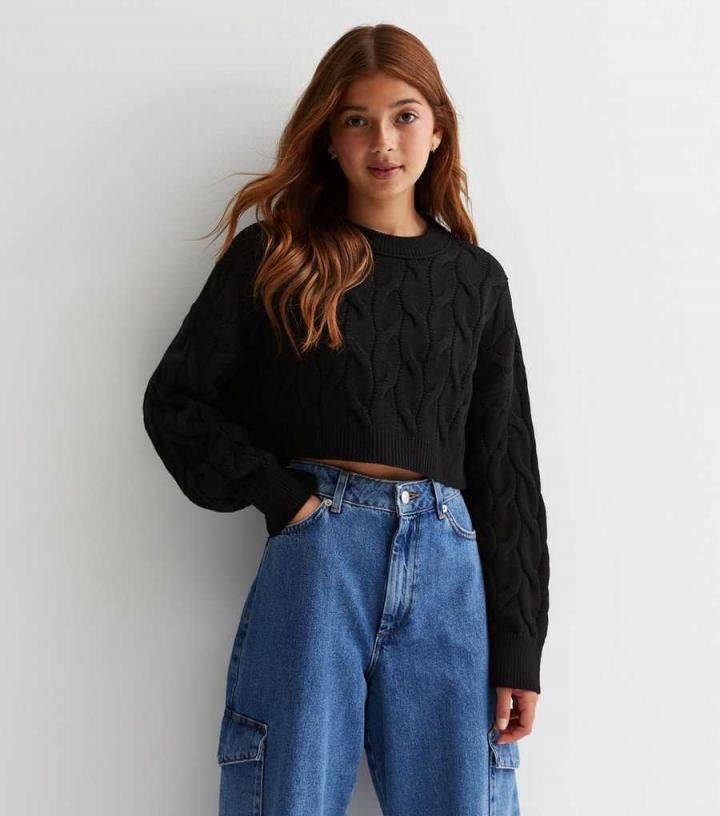 Jumpers & Cardigans | New Look Girls Black Cable Knit Crop Jumper