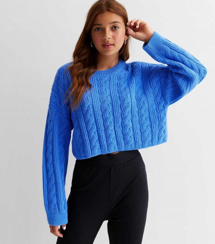Jumpers & Cardigans | New Look Girls Blue Cable Knit Crop Jumper
