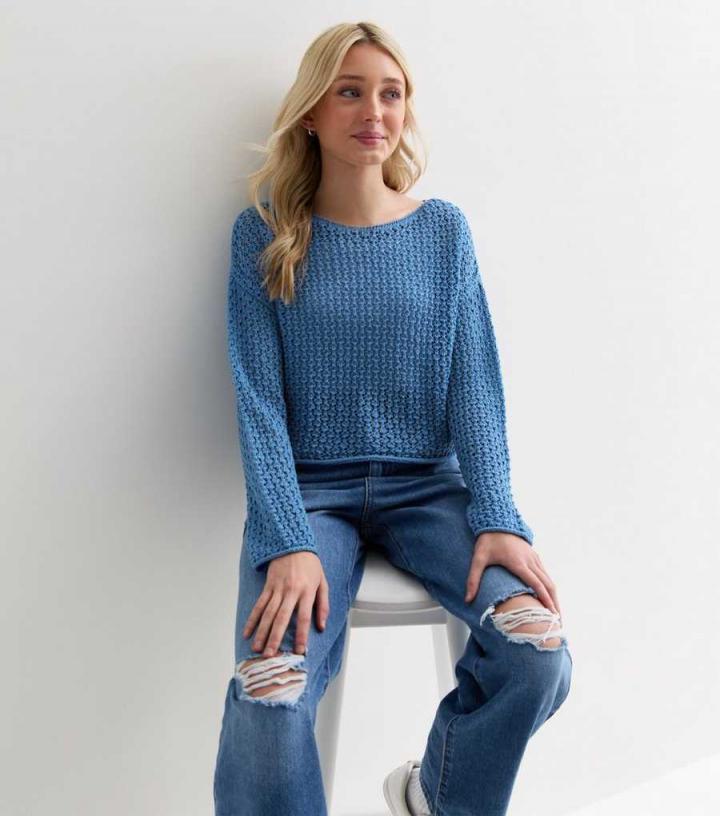 Jumpers & Cardigans | New Look Girls Bright Blue Open Knit Jumper