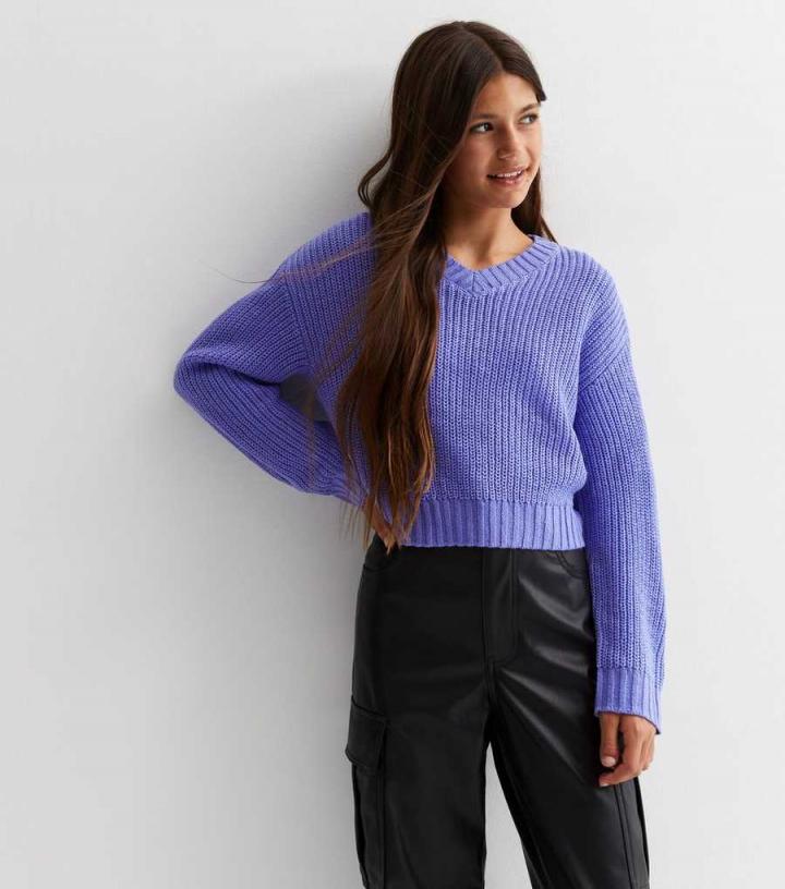 Jumpers & Cardigans | New Look Girls Dark Purple Knit V Neck Crop Jumper