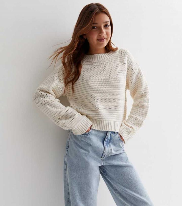 Jumpers & Cardigans | New Look Girls Stone Pointelle Knit Jumper