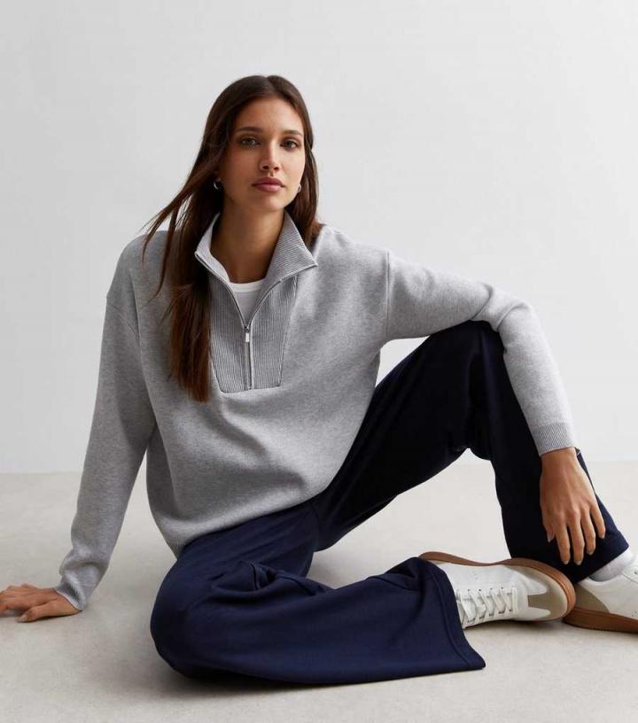 Jumpers & Cardigans | New Look Womens Grey Ribbed Zip Neck Jumper