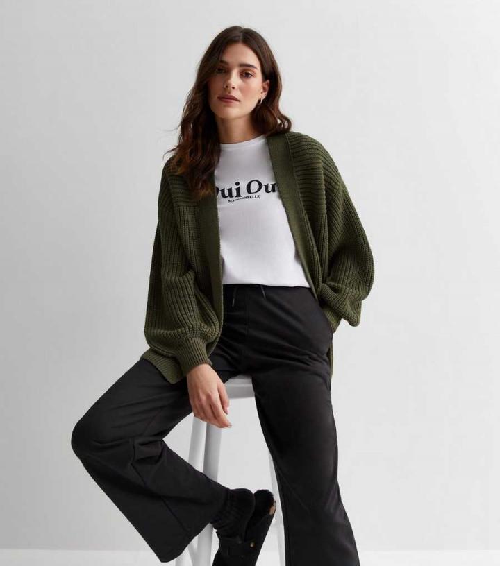 Jumpers & Cardigans | New Look Womens Khaki Mixed Stitch Knit Balloon Sleeve Cardigan