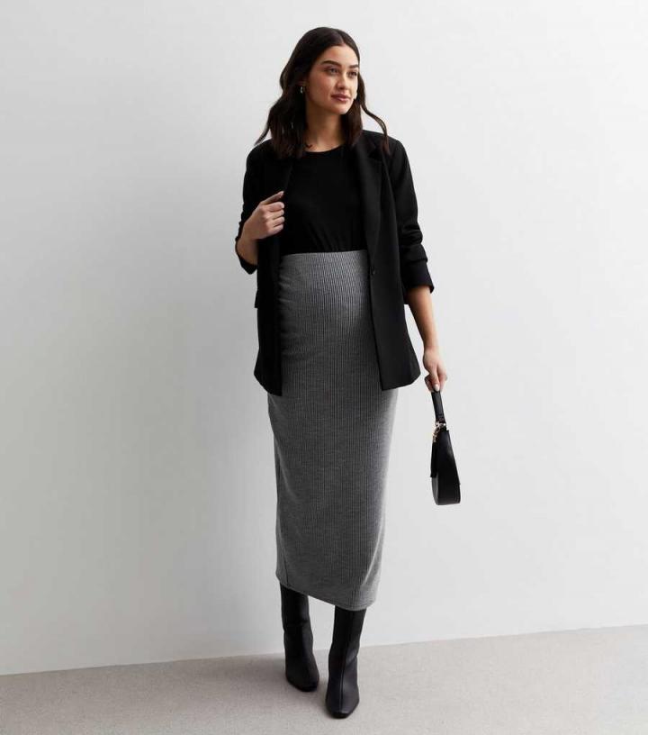 Skirts | New Look Womens Maternity Pale Grey Ribbed Knit Midaxi Skirt