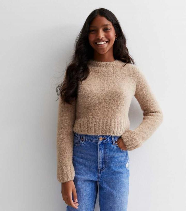 Jumpers & Cardigans | New Look Girls Brown Teddy Crop Jumper