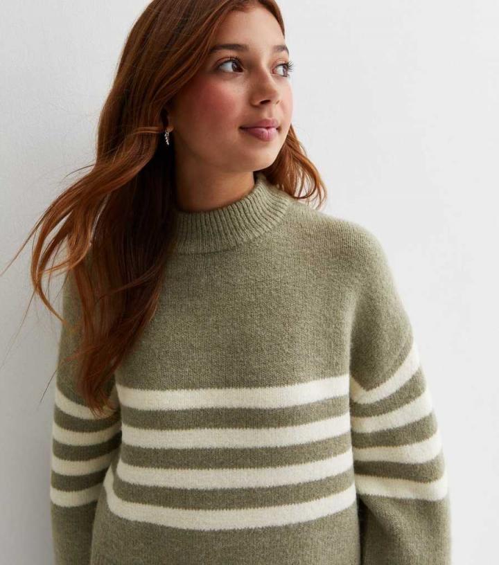 Jumpers & Cardigans | New Look Girls Green Stripe Slouchy Jumper