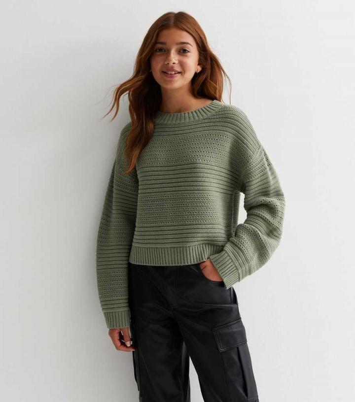 Jumpers & Cardigans | New Look Girls Khaki Pointelle Knit Jumper