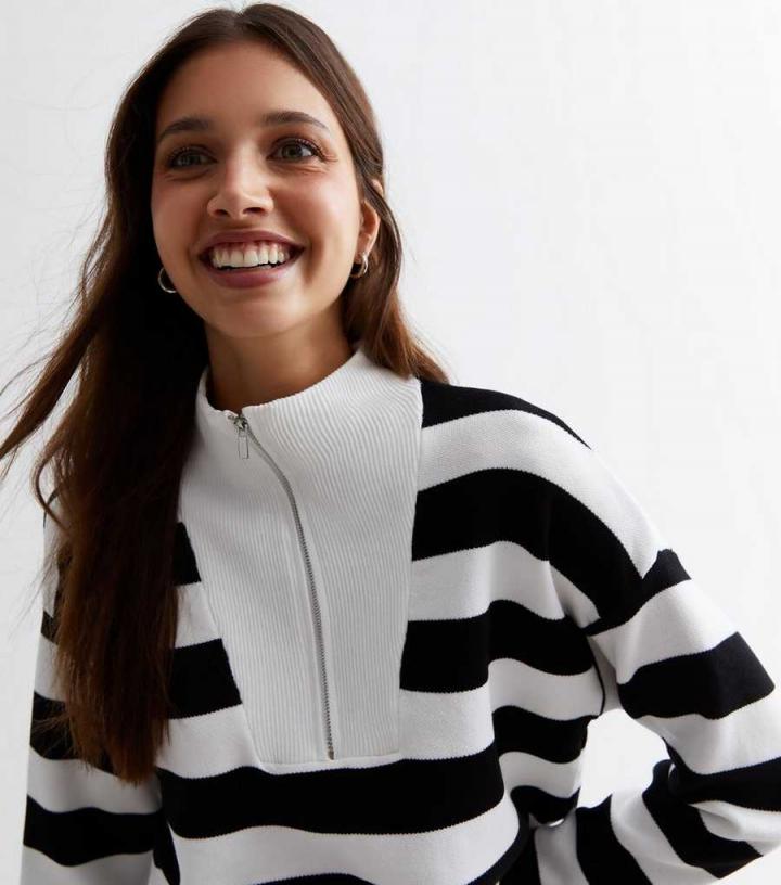 Jumpers & Cardigans | New Look Womens Off White Stripe Zip Neck Jumper