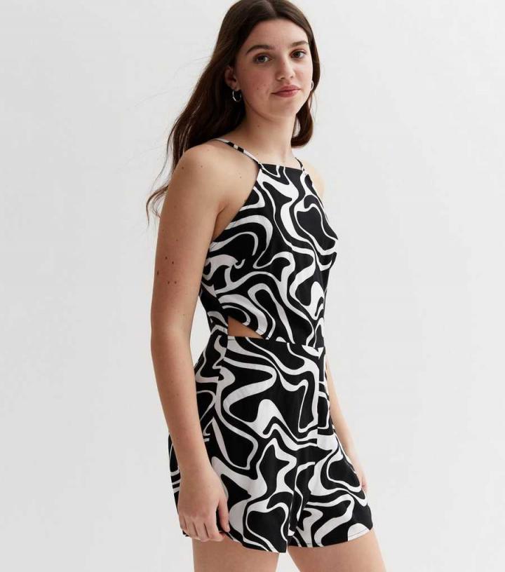 Jumpsuits & Playsuits | New Look Girls Black Marble Strappy Playsuit