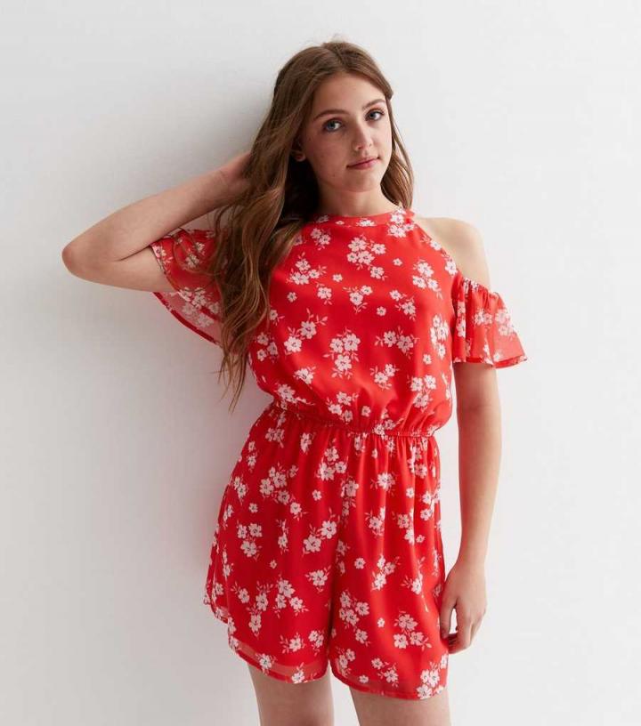 Jumpsuits & Playsuits | New Look Girls Red Floral Cold Shoulder Playsuit