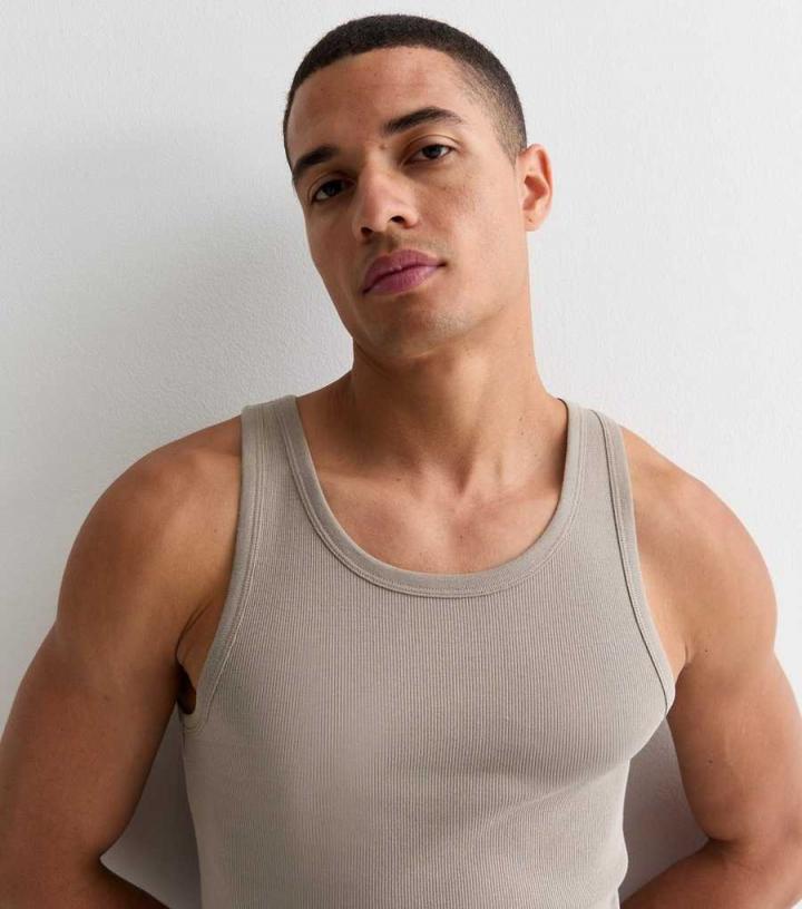T-Shirt & Polos | New Look Mens Brown Ribbed Jersey Muscle Fit Vest