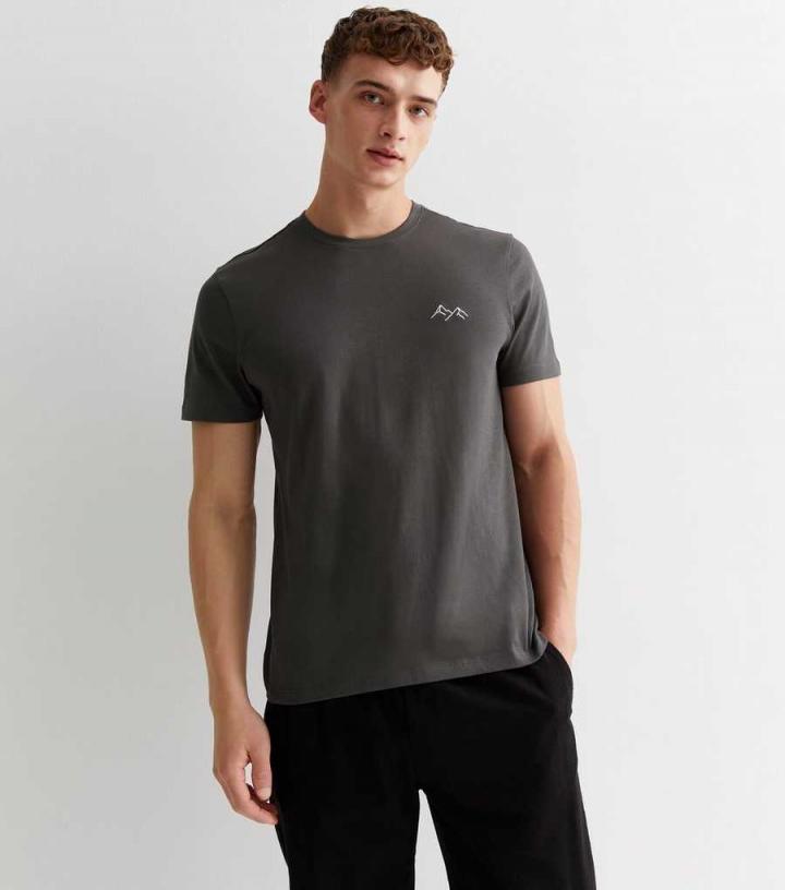 T-Shirt & Polos | New Look Mens Dark Grey Cotton Embroidered Mountain Logo T-Shirt