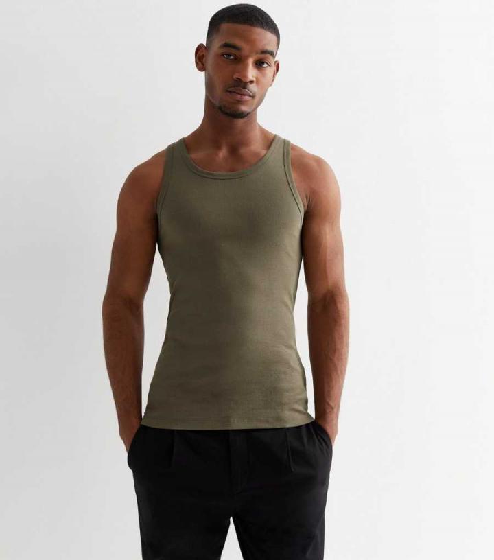 T-Shirt & Polos | New Look Mens Khaki Ribbed Jersey Muscle Fit Vest