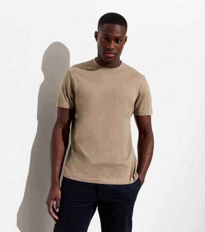 T-Shirt & Polos | New Look Mens Stone Cotton Crew Neck T-Shirt