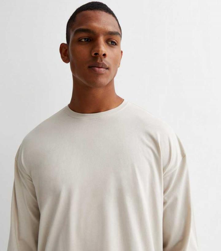 T-Shirt & Polos | New Look Mens Stone Cotton Long Sleeve T-Shirt