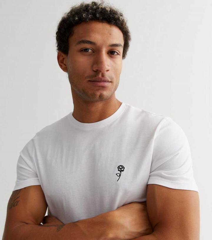 T-Shirt & Polos | New Look Mens White Embroidered Rose Regular Fit T-Shirt