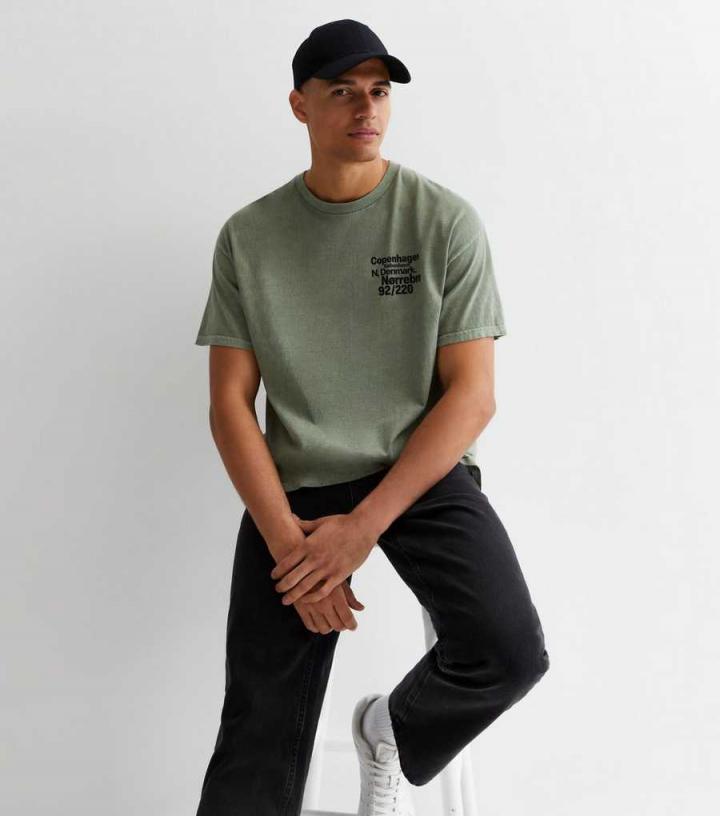 T-Shirt & Polos | New Look Mens Khaki Cotton Copenhagen Logo Relaxed Fit T-Shirt