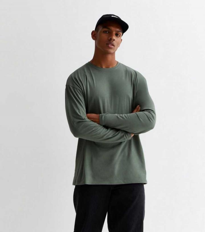 T-Shirt & Polos | New Look Mens Khaki Cotton Long Sleeve T-Shirt