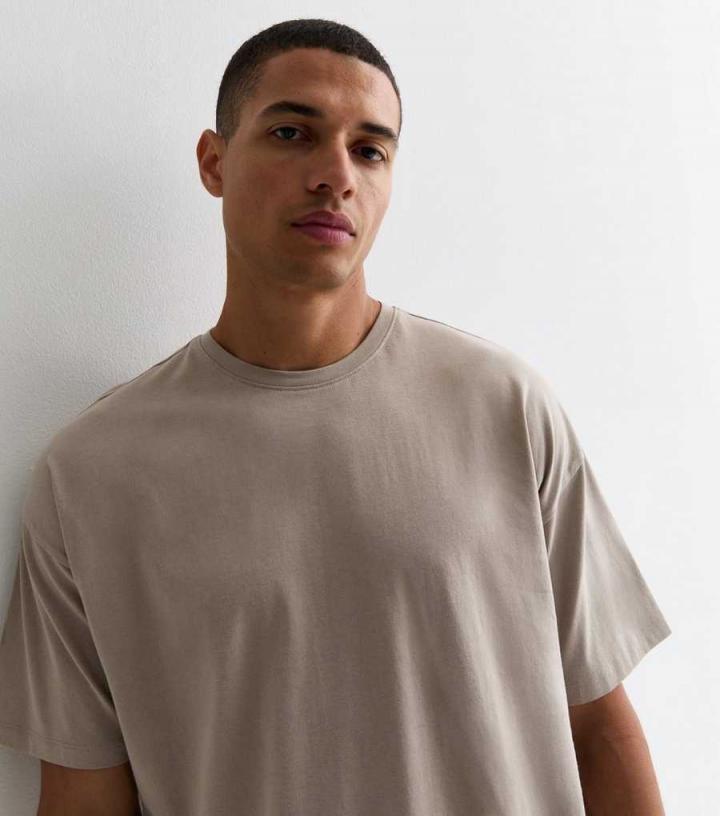 T-Shirt & Polos | New Look Mens Light Brown Cotton Crew Neck Oversized T-Shirt