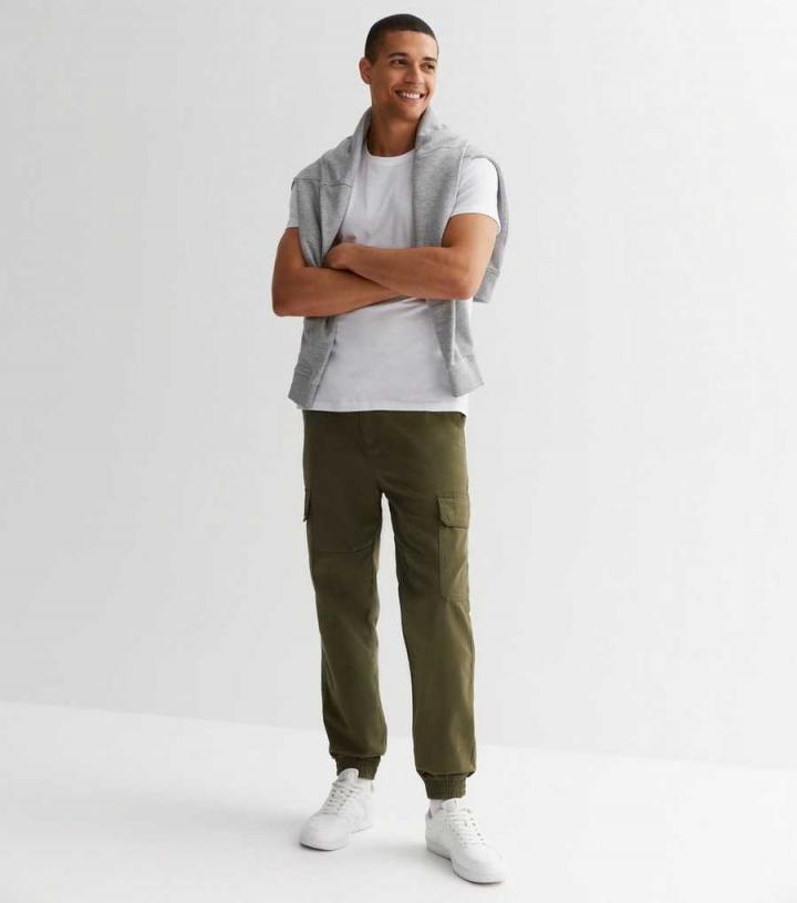 Trousers & Chinos | New Look Mens Khaki Cotton Relaxed Fit Cuffed Crop Cargo Trousers