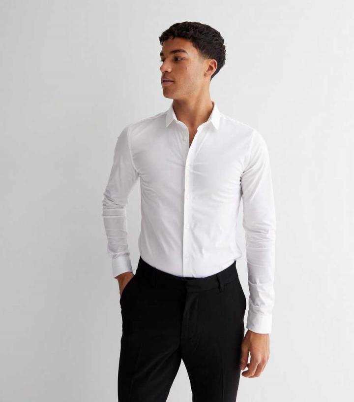 Muscle Fit | New Look Mens White Poplin Long Sleeve Muscle Fit Shirt