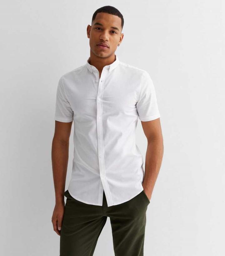 Muscle Fit | New Look Mens White Short Sleeve Muscle Fit Oxford Shirt