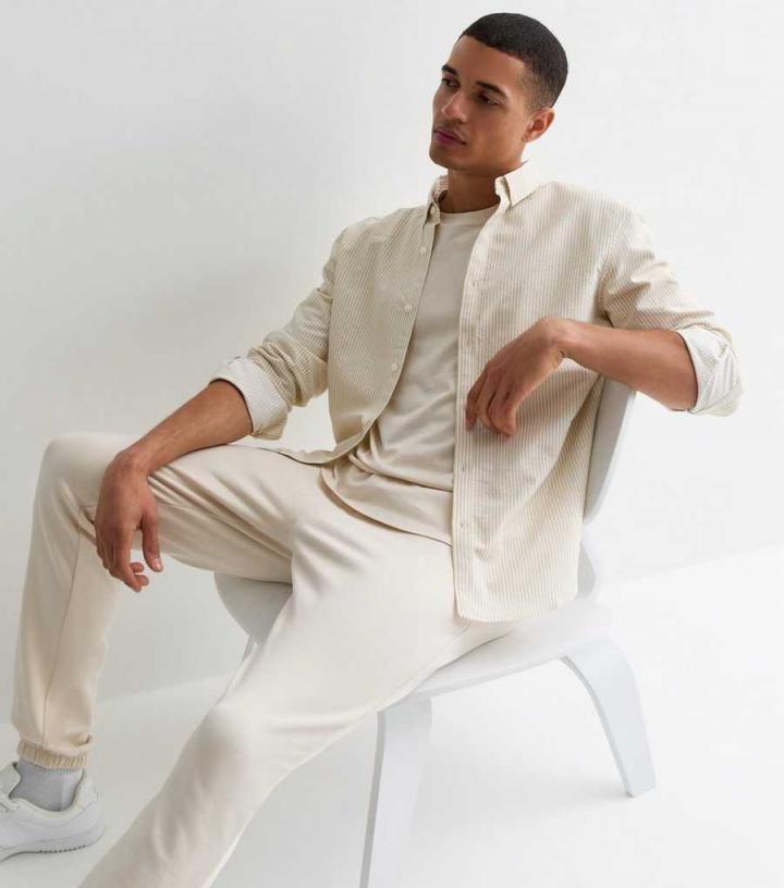 Shirts | New Look Mens Beige Stripe Long Sleeve Cotton Oxford Shirt