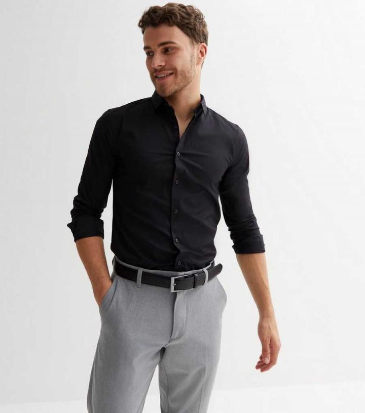 Shirts | New Look Mens Black Poplin Long Sleeve Muscle Fit Shirt