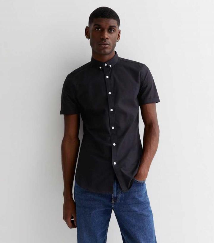 Shirts | New Look Mens Black Short Sleeve Muscle Fit Oxford Shirt