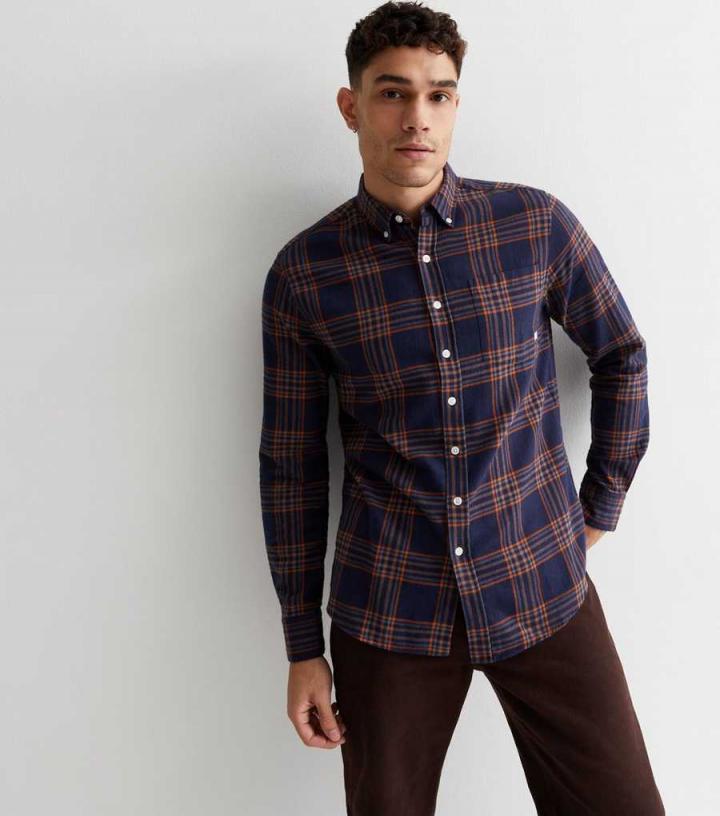 Shirts | New Look Mens Farah Navy Cotton Check Button Up Shirt