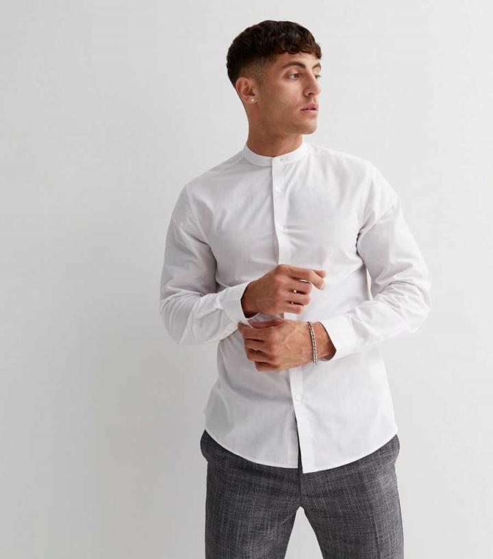 Shirts | New Look Mens White Long Sleeve Grandad Collar Shirt