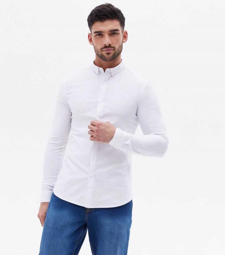 Shirts | New Look Mens White Muscle Fit Long Sleeve Oxford Shirt