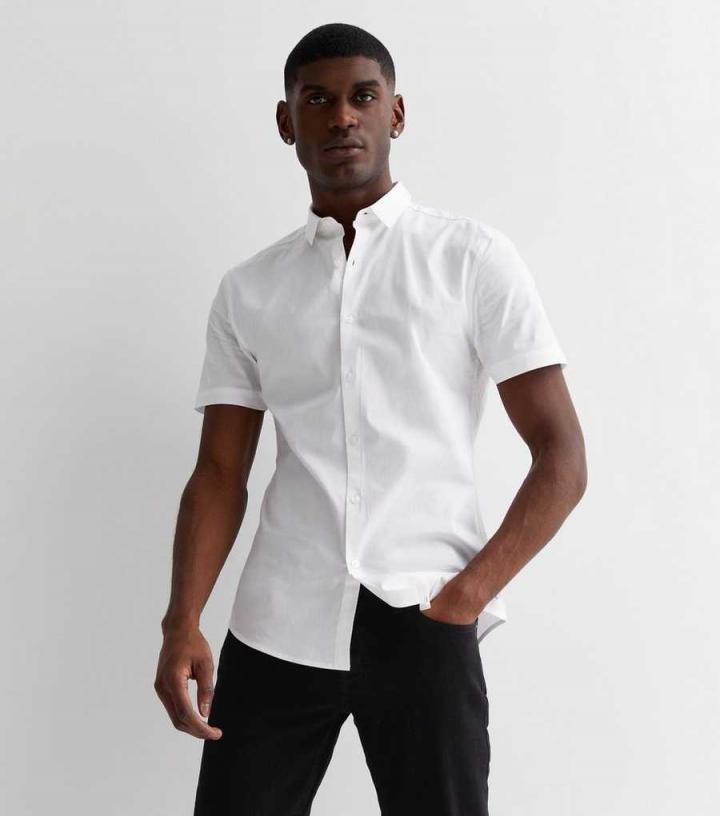 Shirts | New Look Mens White Poplin Short Sleeve Muscle Fit Shirt