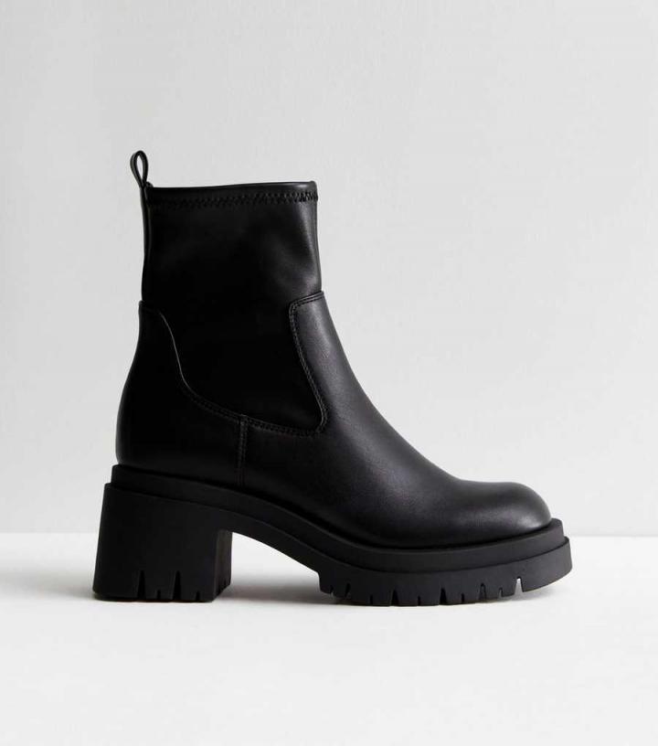 Shoes & Boots | New Look Womens Black Leather-Look Chunky Block Heel Chelsea Boots