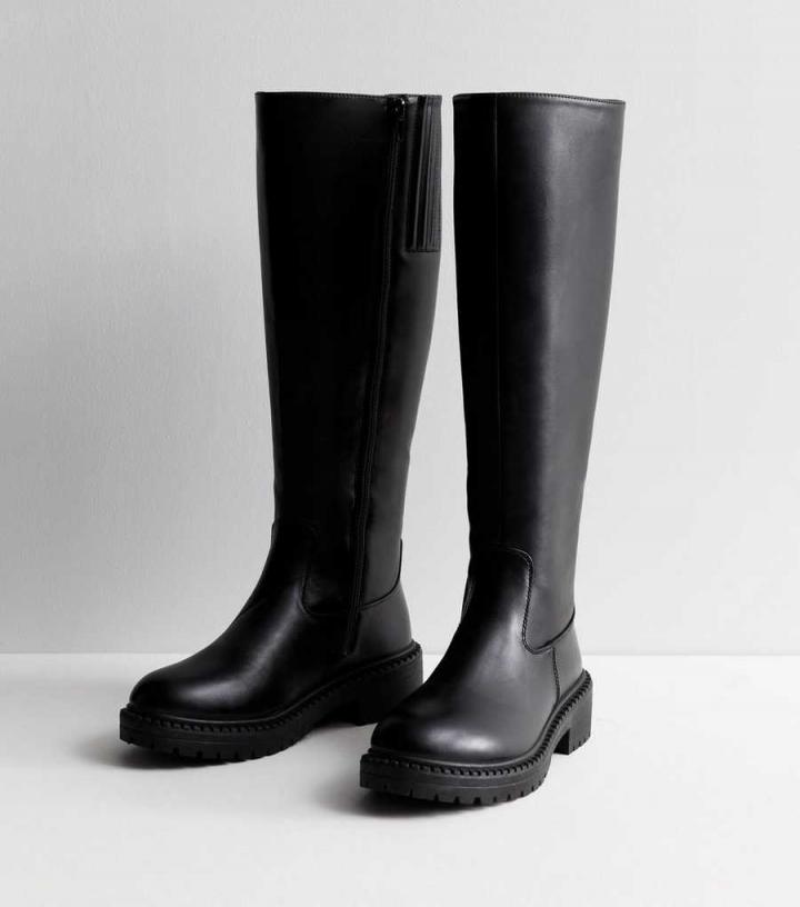 Shoes & Boots | New Look Womens Extra Calf Fit Black Leather-Look Chunky Knee High Boots
