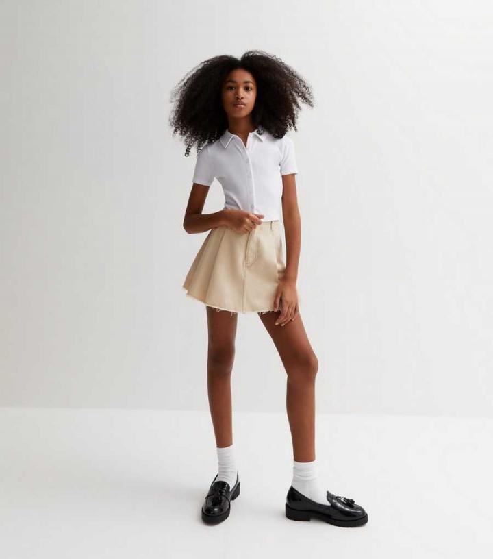 Shorts | New Look Girls Cream Denim Cargo Skort