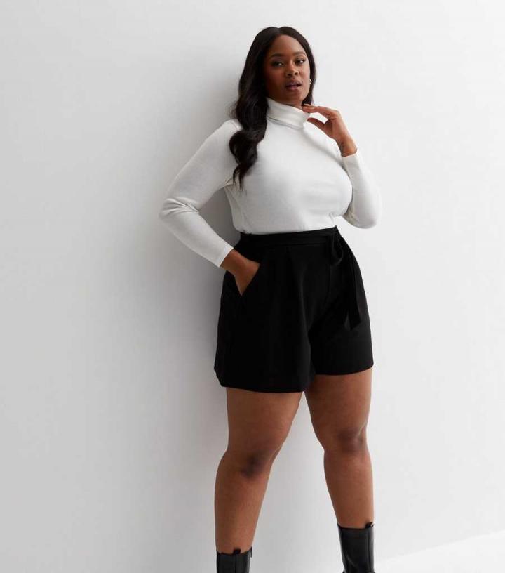 Shorts | New Look Womens Curves Black Tie Waist Shorts