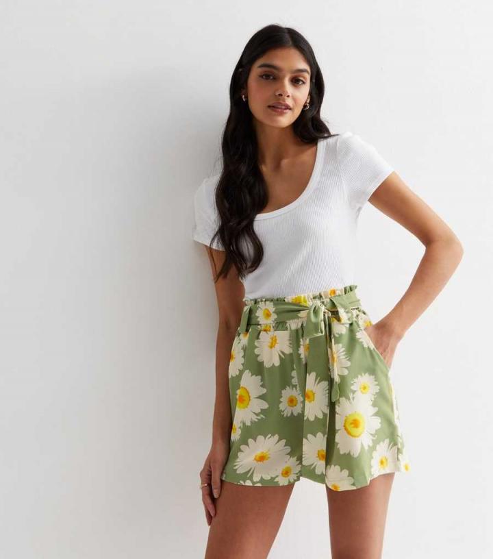 Shorts | New Look Womens Pink Vanilla Olive Floral Belted Shorts