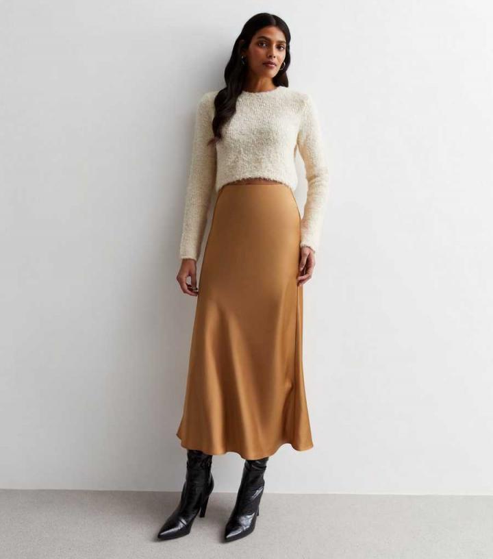 Skirts | New Look Womens Camel Satin Bias Cut Midi Skirt