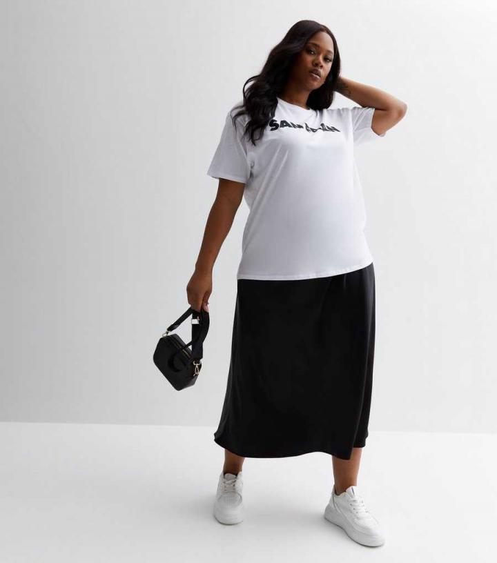 Skirts | New Look Womens Curves Black Satin Bias Cut Midi Skirt