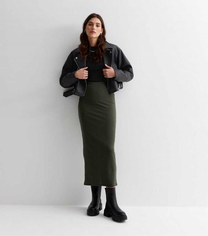 Skirts | New Look Womens Khaki Ribbed Jersey Midi Skirt