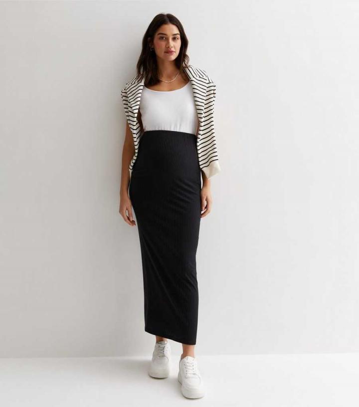 Skirts | New Look Womens Maternity Black Ribbed Bodycon Midi Skirt